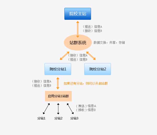 2.主站可以推送數據給某個分站或者全部分站,分站可以推送數據給主站,實現一站式共享